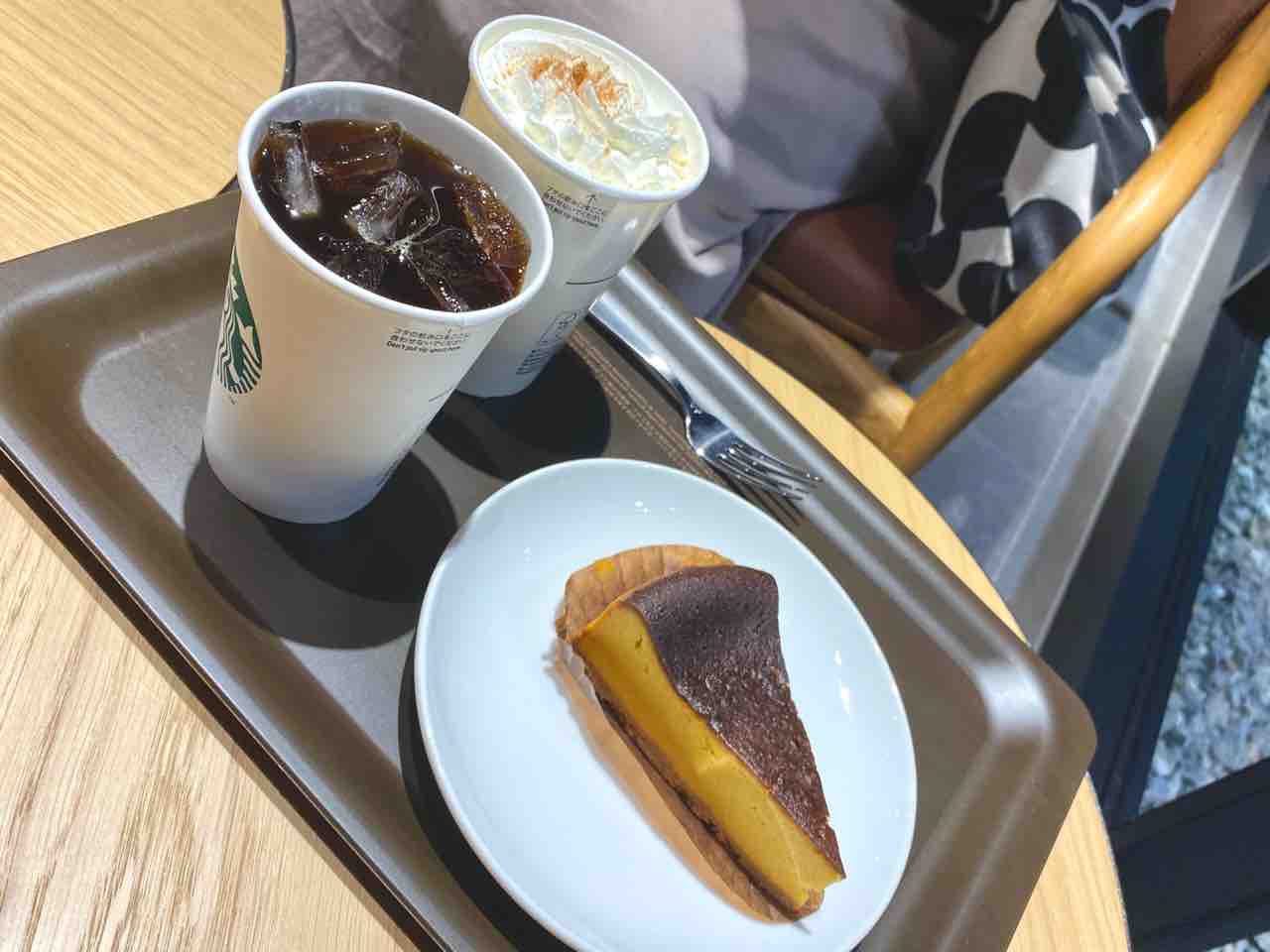 今はやってる(らしい)、パンプキンスパイスラテとパンプキンのバスクチーズケーキも食べましたよ。