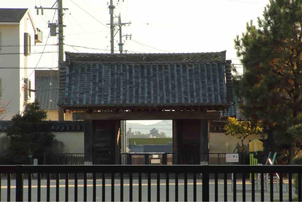 三門から外を見ると、隣にある大樹寺小学校の中にも古〜い門があります。