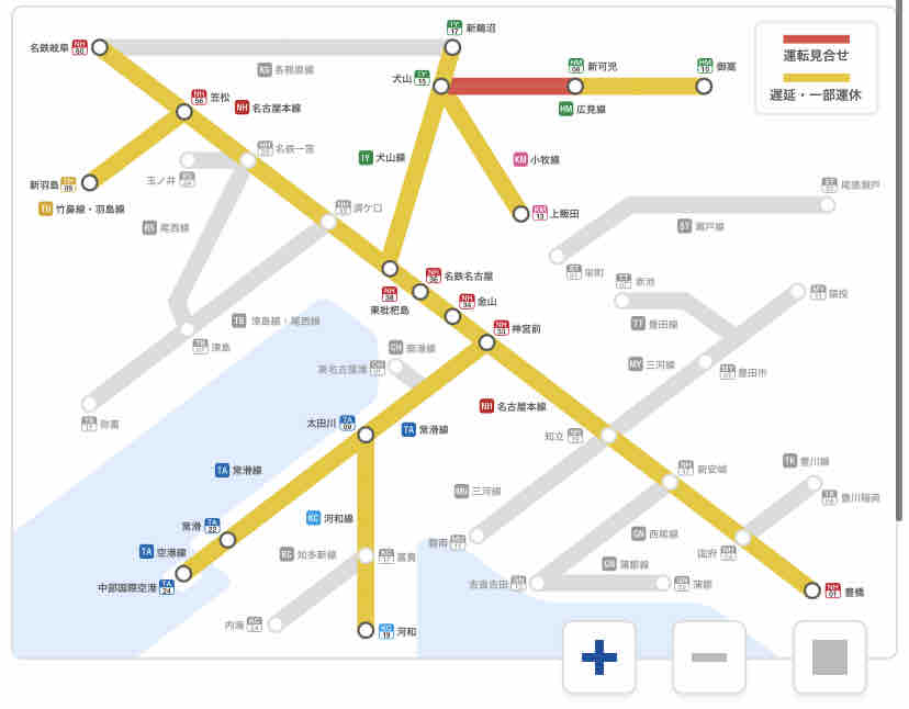 (参考:名鉄電車の運行情報。遅れてますね〜)