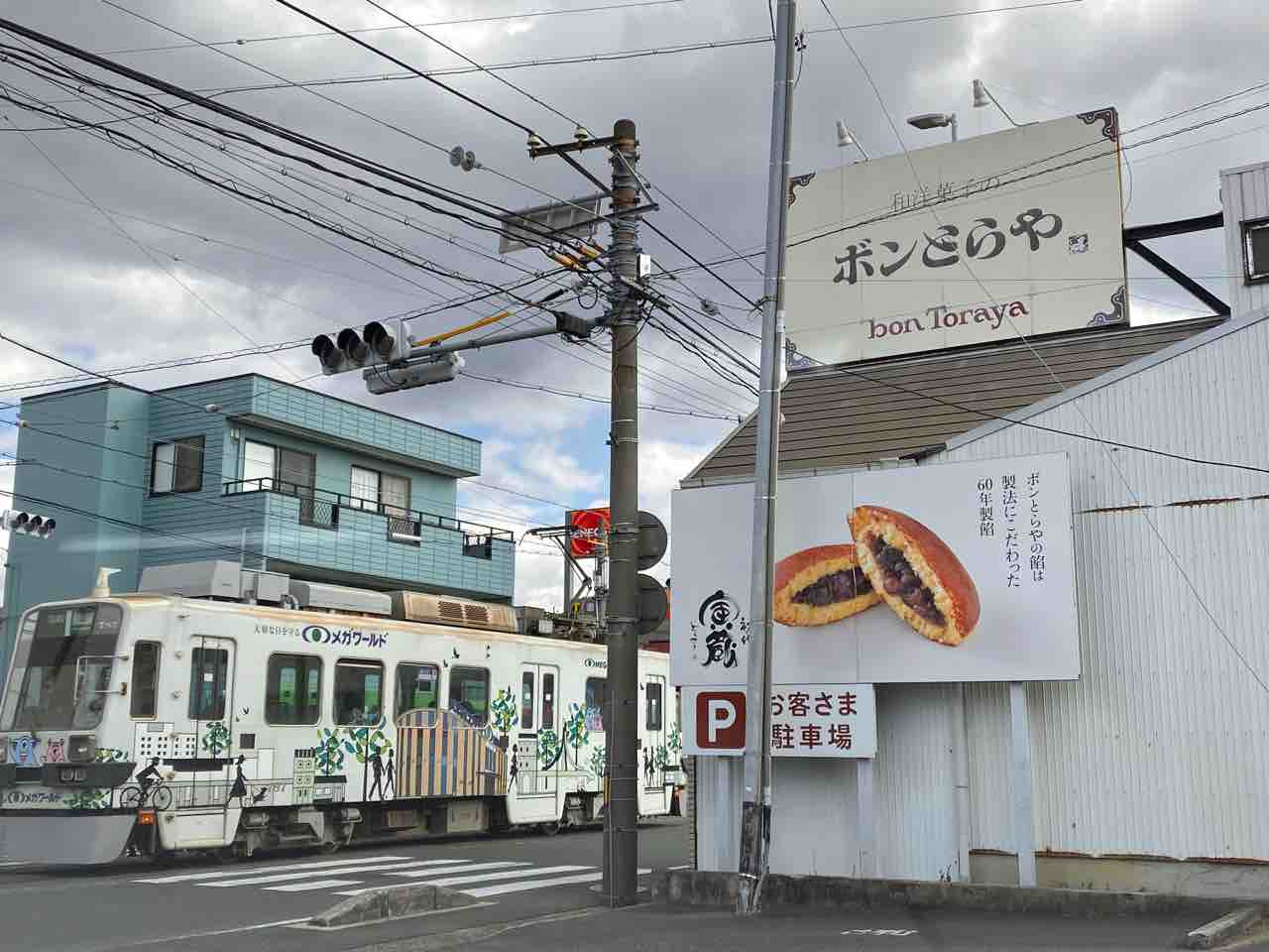 先日のブログ記事、ブラックサンダー直売店の帰りに寄ったのは東田店です。店の目の前を路面電車!