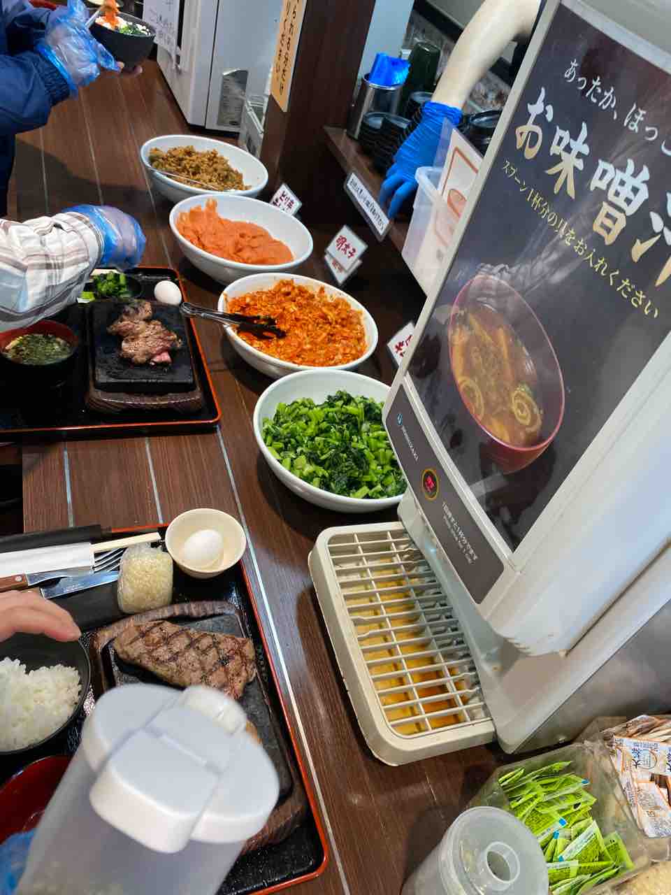 向こうはサラダやスープでしたが、このお店はお味噌汁!
