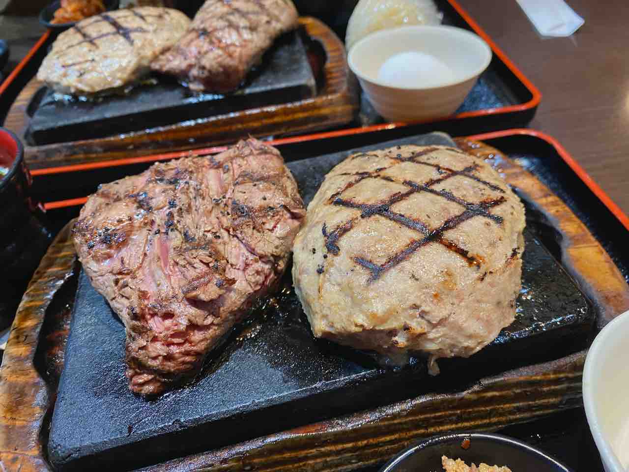 ステーキもハンバーグも両方食べたかったので、コンビにしました。
