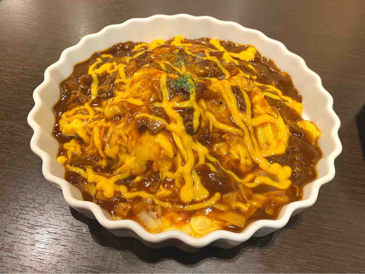 これはデミグラスにチーズのトッピング。同じ値段でLサイズも無料にできるんですって!