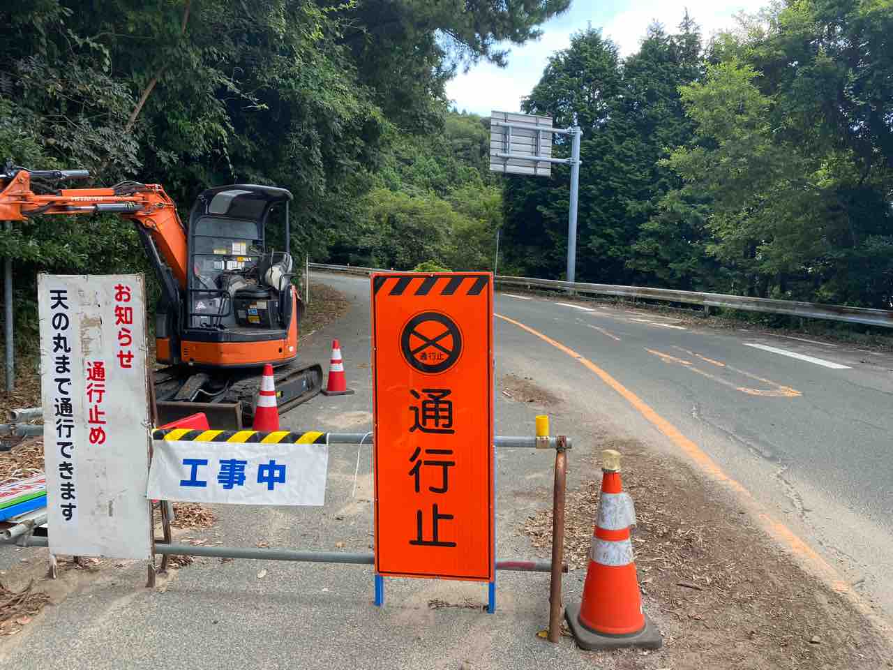台風の影響で通行止めになってるんですね(先日の7号ではない?その前のヤツらしい)。調べてみると道路陥没してるんだとか。