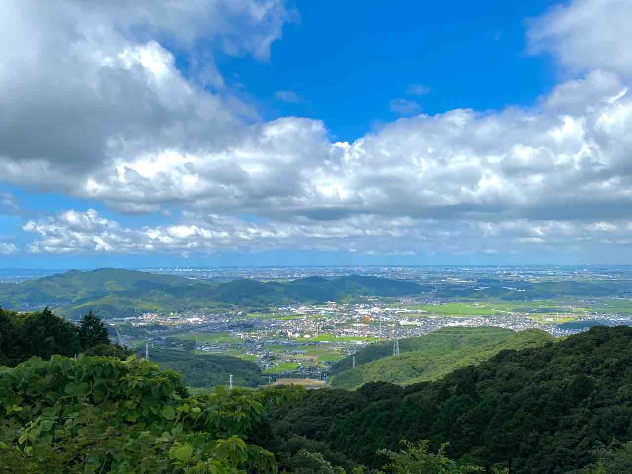 目の前の街が幸田町の市街地ですね。よく見ると、幸田駅とかJRの電車も見えますよ。