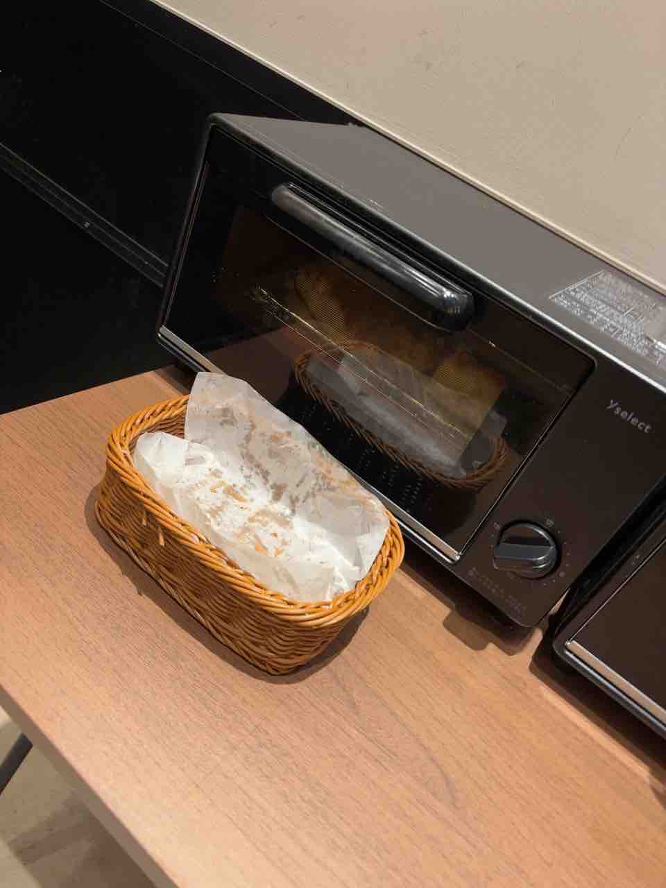 オーブントースターがあるので、パンを温めて食べられます。