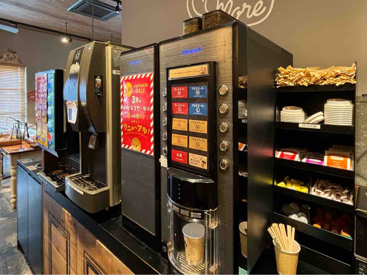 7:00〜11:30の間、イートインスペースで行われています。パン食べ放題と、フリードリンクで税込858円!
