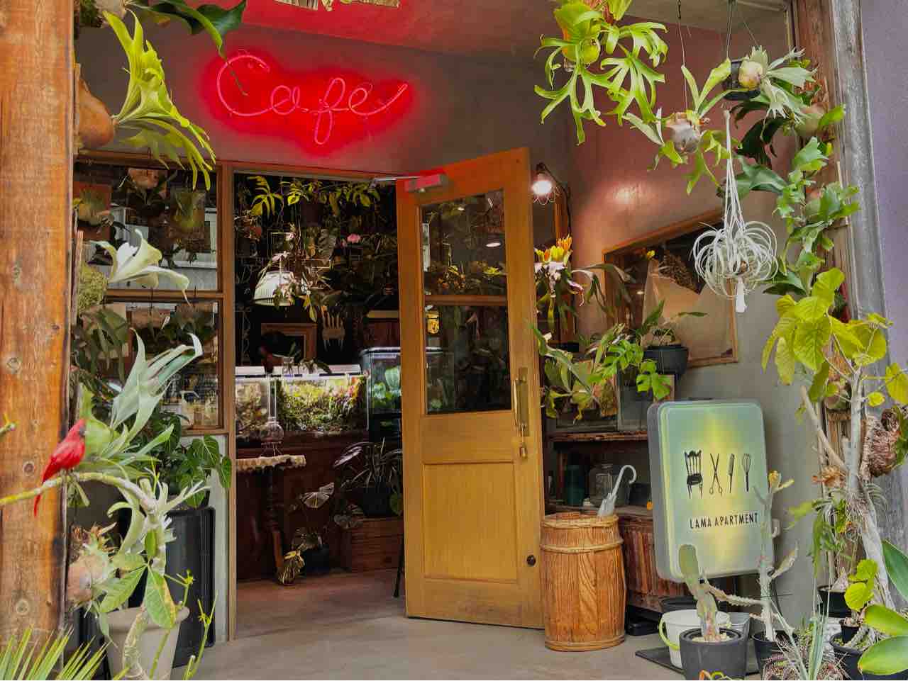 こちらがカフェの入り口です。色々な種類の植物が置かれていますね!