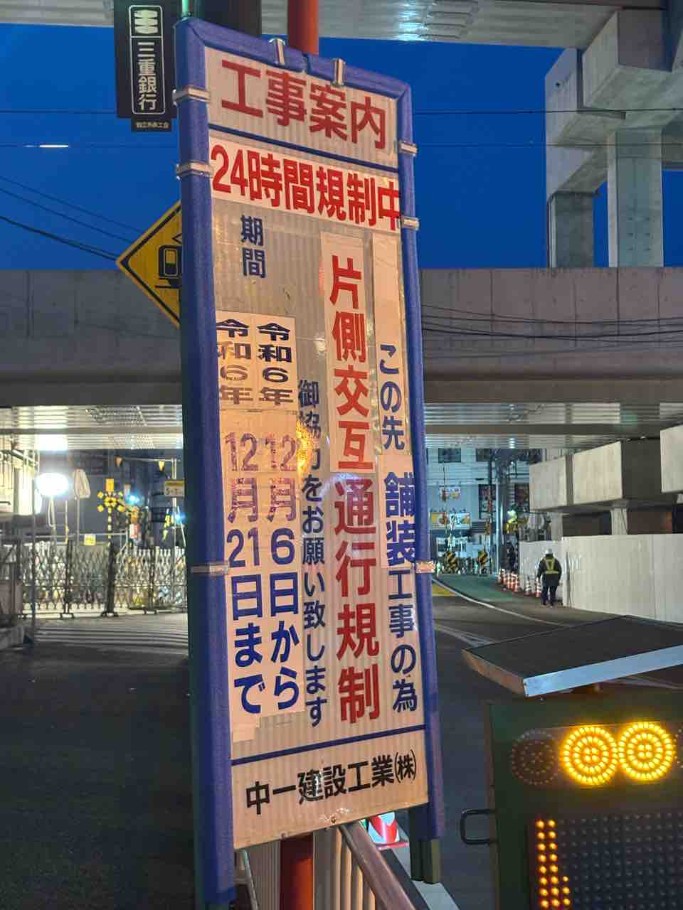12月21日(土)までの工事と、その後4月上旬までの間に片側交互通行、夜間通行止めが行われています!